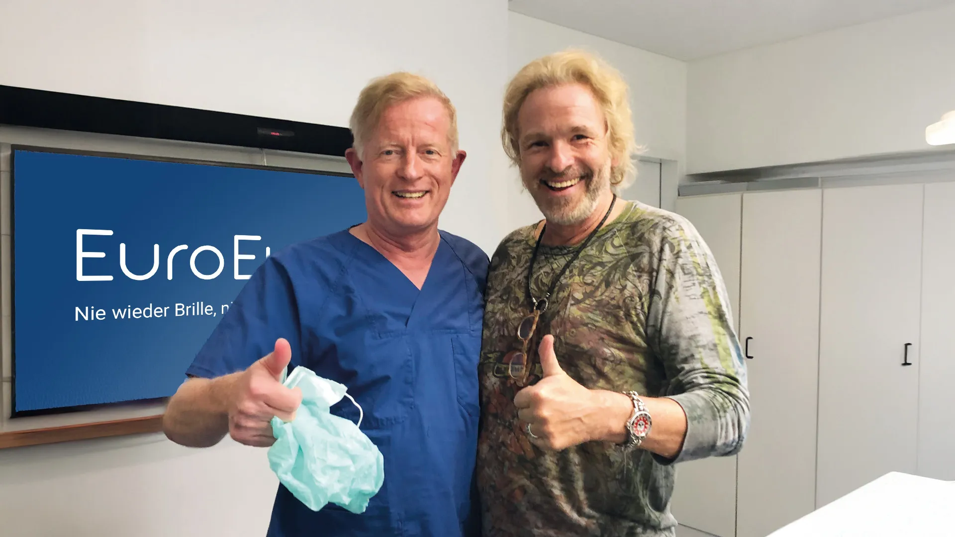 Vor über sieben Jahren hat sich Thomas Gottschalk bei EuroEyes Trifokal-/Multifokallinsen einsetzen lassen. Seitdem stand er wiederholt für EuroEyes auf der Bühne und erzählte von seiner Erfahrung mit der Behandlung. Seine Begeisterung als selbst proklamie